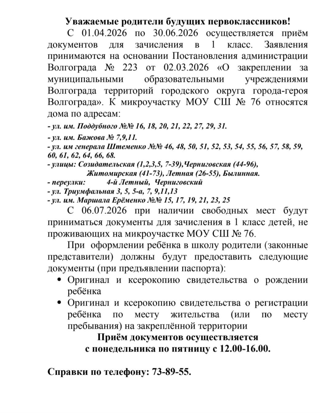 МУНИЦИПАЛЬНОЕ ОБЩЕОБРАЗОВАТЕЛЬНОЕ УЧРЕЖДЕНИЕ "СРЕДНЯЯ ШКОЛА № 76 КРАСНООКТЯБРЬСКОГО РАЙОНА ВОЛГОГРАДА"